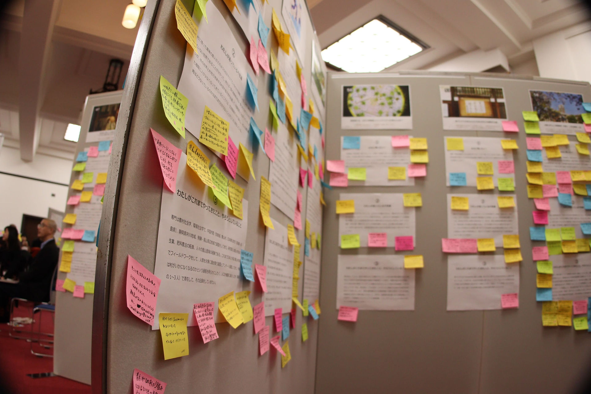 確かにこれまで多数のポスターをみてきて、あまりに専門用語を多用したもの、理解するのにあまりに前提条件が必要なものは、なかなか他分野に響きが与えられず付箋紙が少ないのもありました。ある年の企画後、とある物性物理研究者は「もっとわかりやすく書くべきだった」と反省しておられますが、それは違います。もちろん専門用語を使わないなどテクニカルな工夫はあるにせよ、「わかりやすく書く(伝える)」というのはサイエンスコミュニケーターの仕事であって研究者のそれではありません。研究者は、自身の研究テーマと社会との「接続」についてこそ話せばいいのです。これは断じて「役立つこと」「社会にとってのご利益」を書けといっているのではありません。